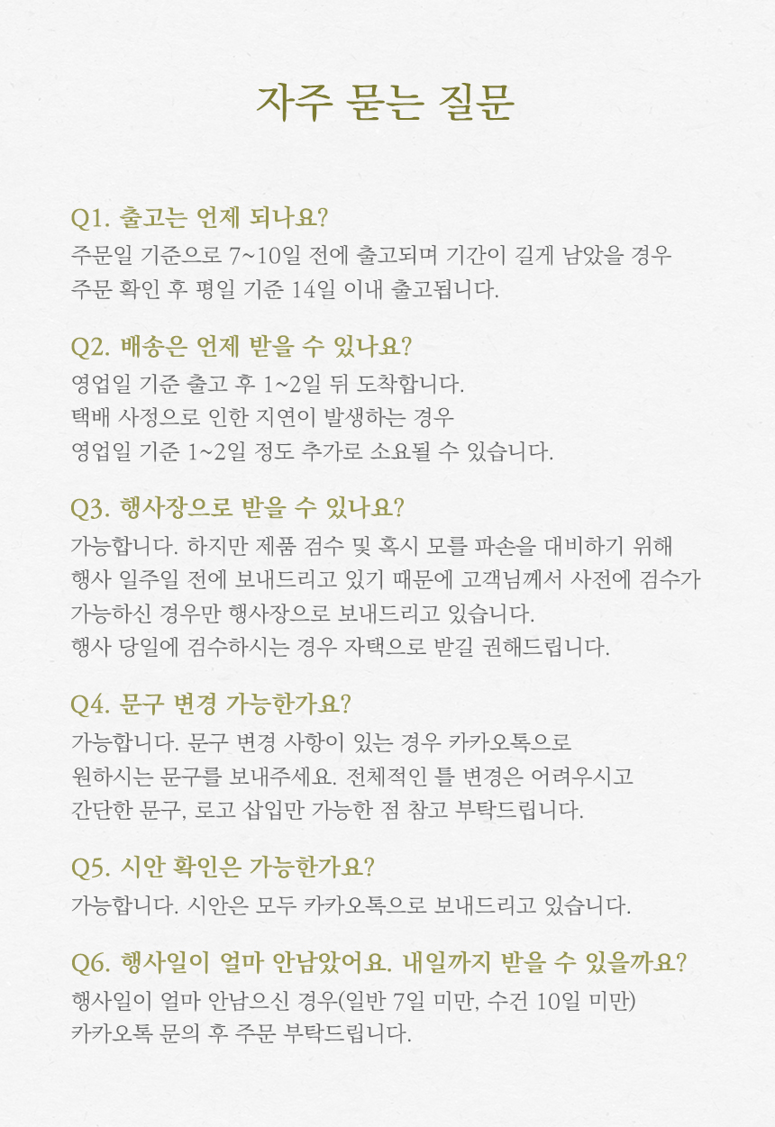 - 급한 일정 주문건은 개별 문의 후 주문 바랍니다.
