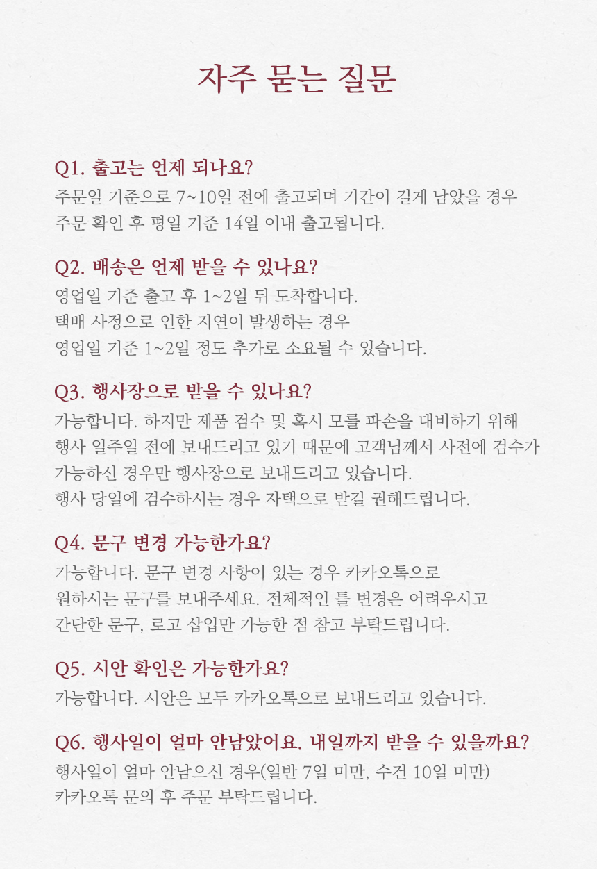 - 급한 일정 주문건은 개별 문의 후 주문 바랍니다.